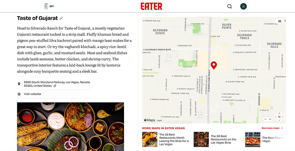 Head to Silverado Ranch for Taste of Gujarat, a mostly vegetarian Gujarati restaurant tucked in a strip mall. Fluffy khaman bread and pigeon pea-stuffed lilva kachori paired with mango lassi makes for a great way to start. Or try the vaghareli khichadi, a spicy rice-lentil dish with ghee, garlic, and mustard seeds. Meat and seafood dishes include lamb samosas, butter chicken, and shrimp curry. The transportive interior features a laid-back lounge lit by lanterns alongside cozy banquette seating and a sleek bar.